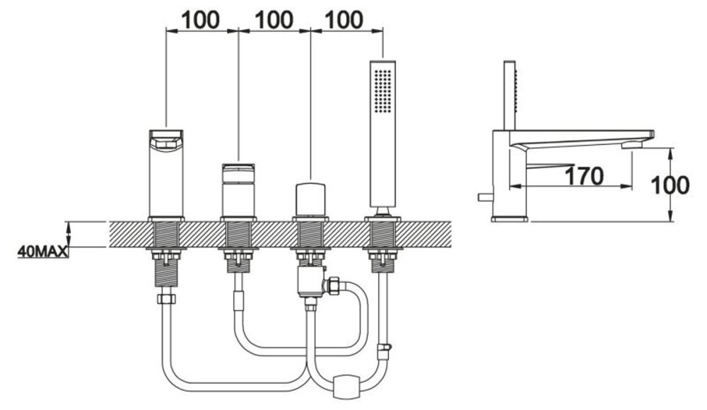 Смеситель для ванны BelBagno Carin CAR-VIM4-CRM