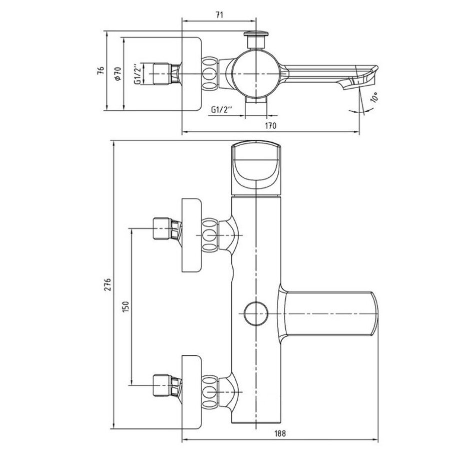 - Длина излива, мм: 170