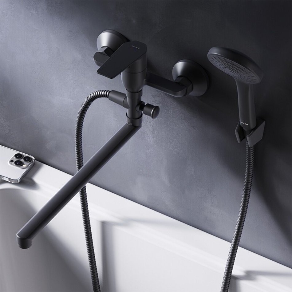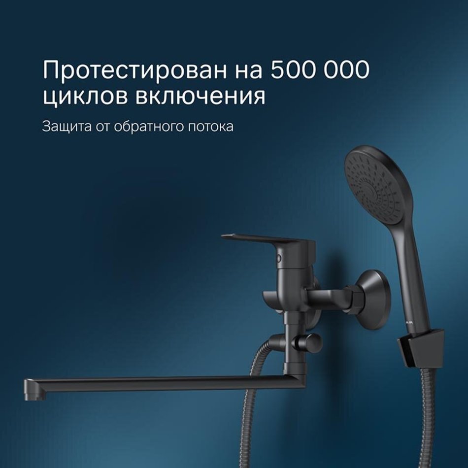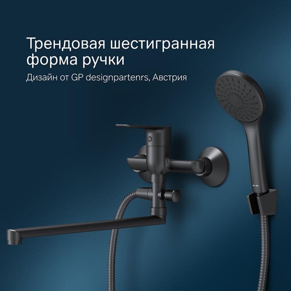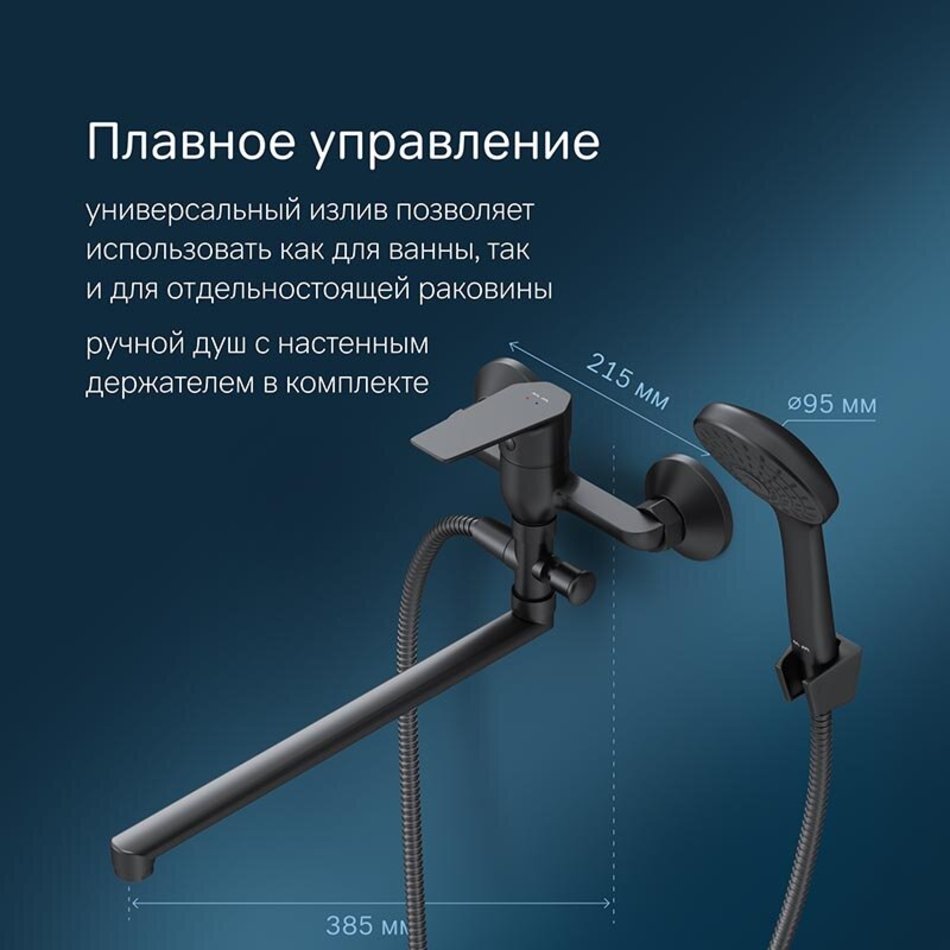 Стильное универсальное решение для ванной комнаты - качественный смеситель для ванны и душа с длинным поворотным изливом с душевым набором. Универсальный длинный излив позволяет использовать смеситель как для ванны, так и для рядом стоящей раковины. Функциональный держатель для ручного душа на два положения добавит удобства использования. Душевой шланг длиной 150 см позволит наслаждаться душем даже высокому человеку. Максимум функций за разумную плату в одном изделии! Ультрамодный дизайн ручки придает смесителю дополнительную динамику и дарит непревзойденную легкость управления. Вы почувствуете это с первого прикосновения. Точная инженерия для вашего комфорта: благодаря обширной зоне движения ручки управлять температурой воды стало еще проще.