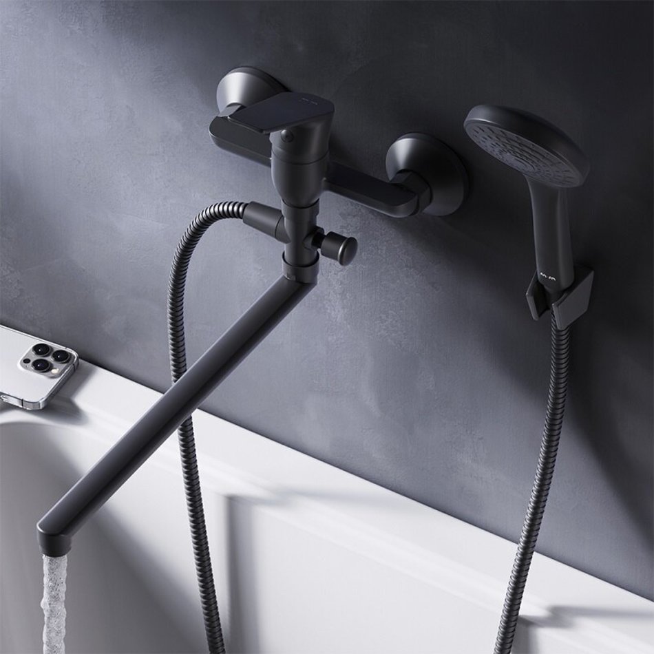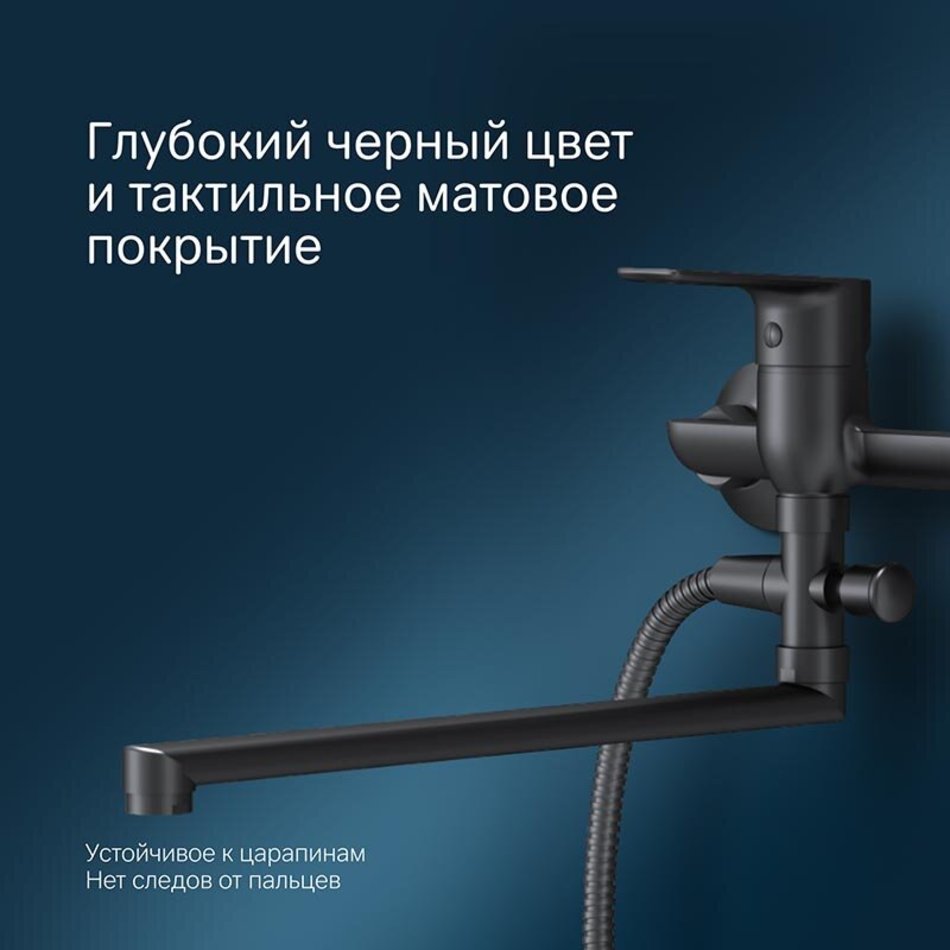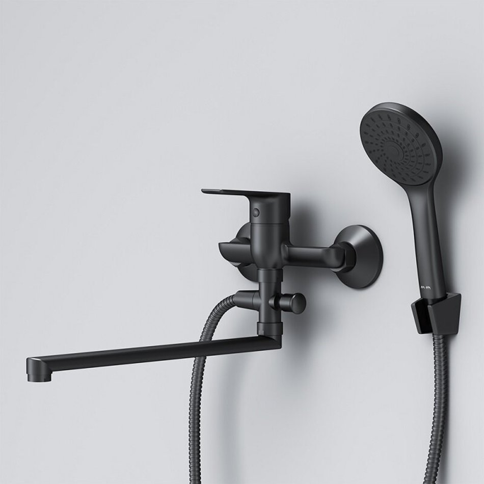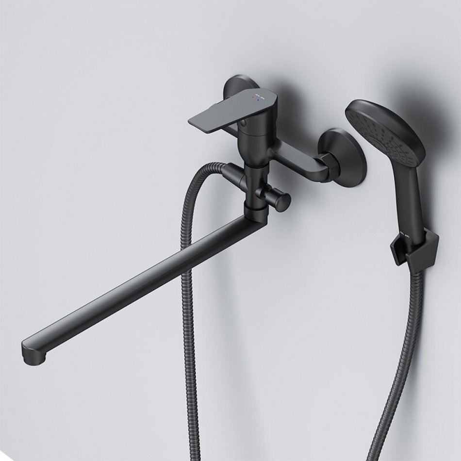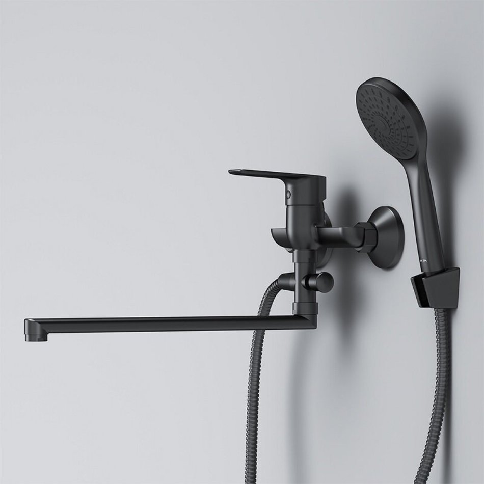 Стильное универсальное решение для ванной комнаты - качественный смеситель для ванны и душа с длинным поворотным изливом с душевым набором. Универсальный длинный излив позволяет использовать смеситель как для ванны, так и для рядом стоящей раковины. Функциональный держатель для ручного душа на два положения добавит удобства использования. Душевой шланг длиной 150 см позволит наслаждаться душем даже высокому человеку. Максимум функций за разумную плату в одном изделии! Ультрамодный дизайн ручки придает смесителю дополнительную динамику и дарит непревзойденную легкость управления. Вы почувствуете это с первого прикосновения. Точная инженерия для вашего комфорта: благодаря обширной зоне движения ручки управлять температурой воды стало еще проще.
