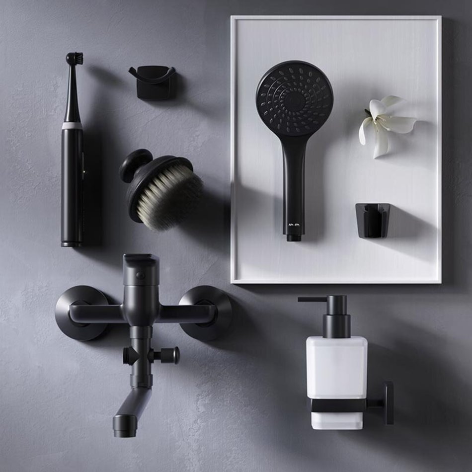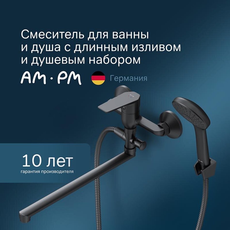 Смеситель для ванны и душа Am.Pm Gem с душевым комплектом, черный матовый, F90A90122