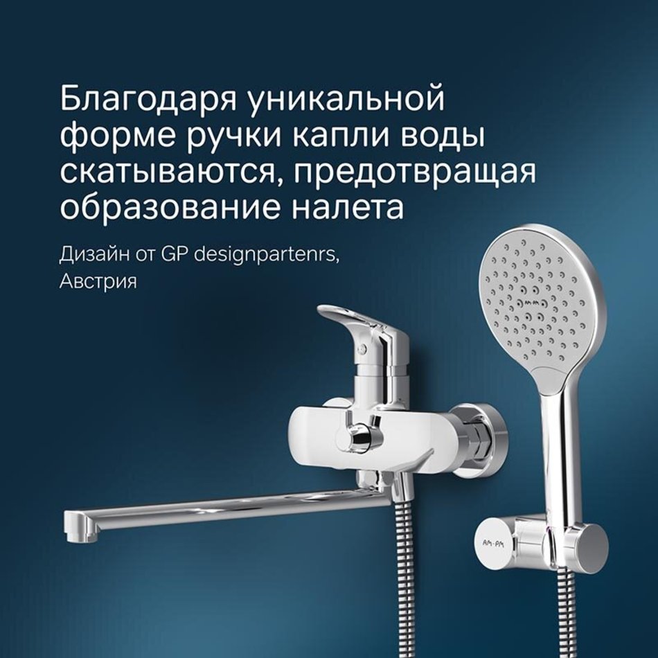 Дизайн, в котором учтены все детали: благодаря уникальной форме ручки капли воды скатываются, предотвращая образование налета, а не высыхают на поверхности.