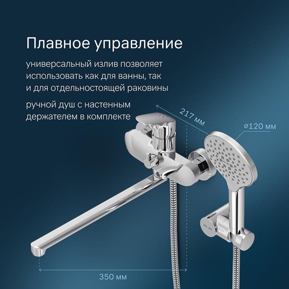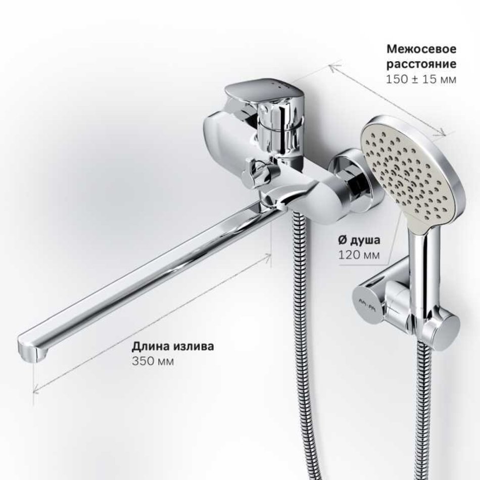 Смеситель для ванны и душа Am.Pm Like F8095000 с длинным изливом и душевой лейкой