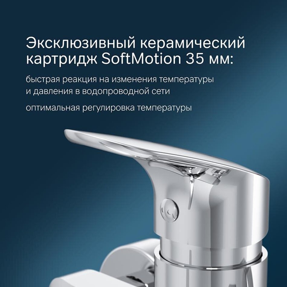 Точная инженерия для Вашего комфорта: благодаря обширной зоне движения ручки управлять температурой воды еще проще.
