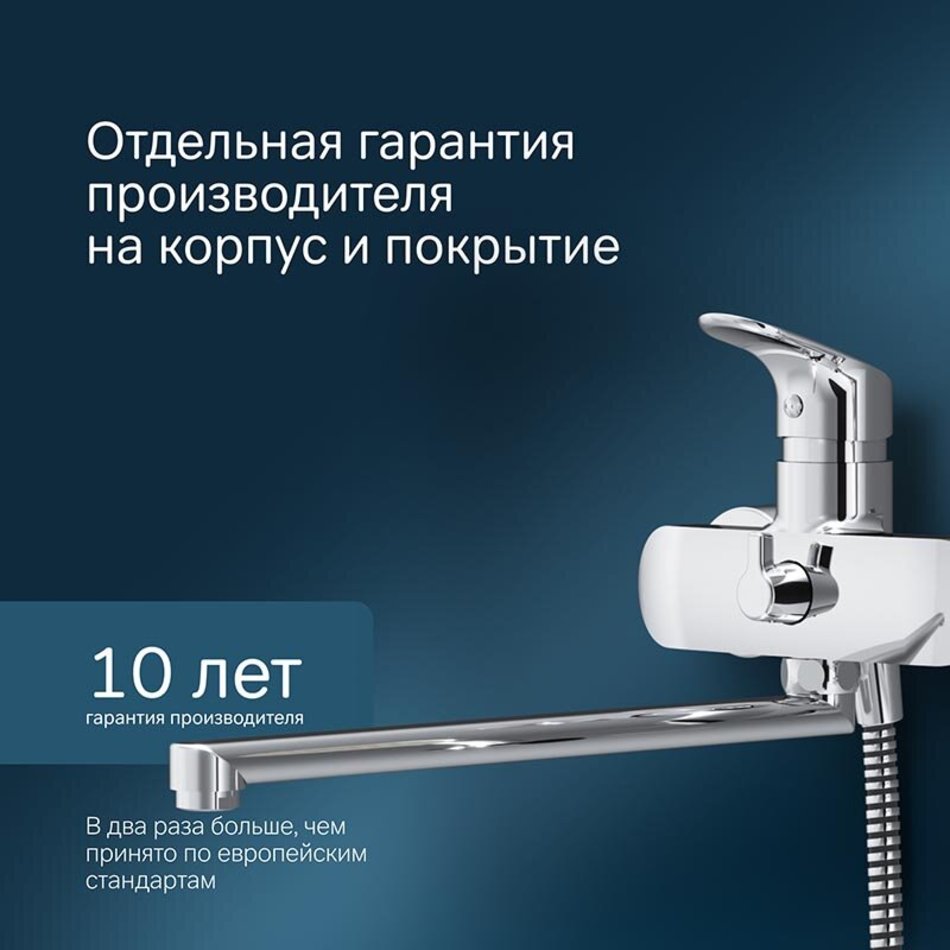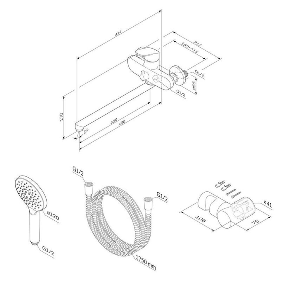 Состав поставки: Смеситель, поворотный излив, эксцентрики, декоративные чаши, ручной душ, настенный держатель для ручного душа, душевой шланг, инструкция
