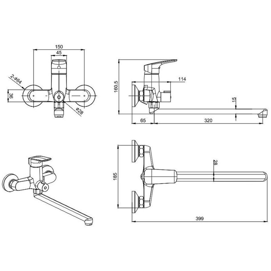 - благодаря длинному изливу, возможность использовать одновременно для ванны и раковины