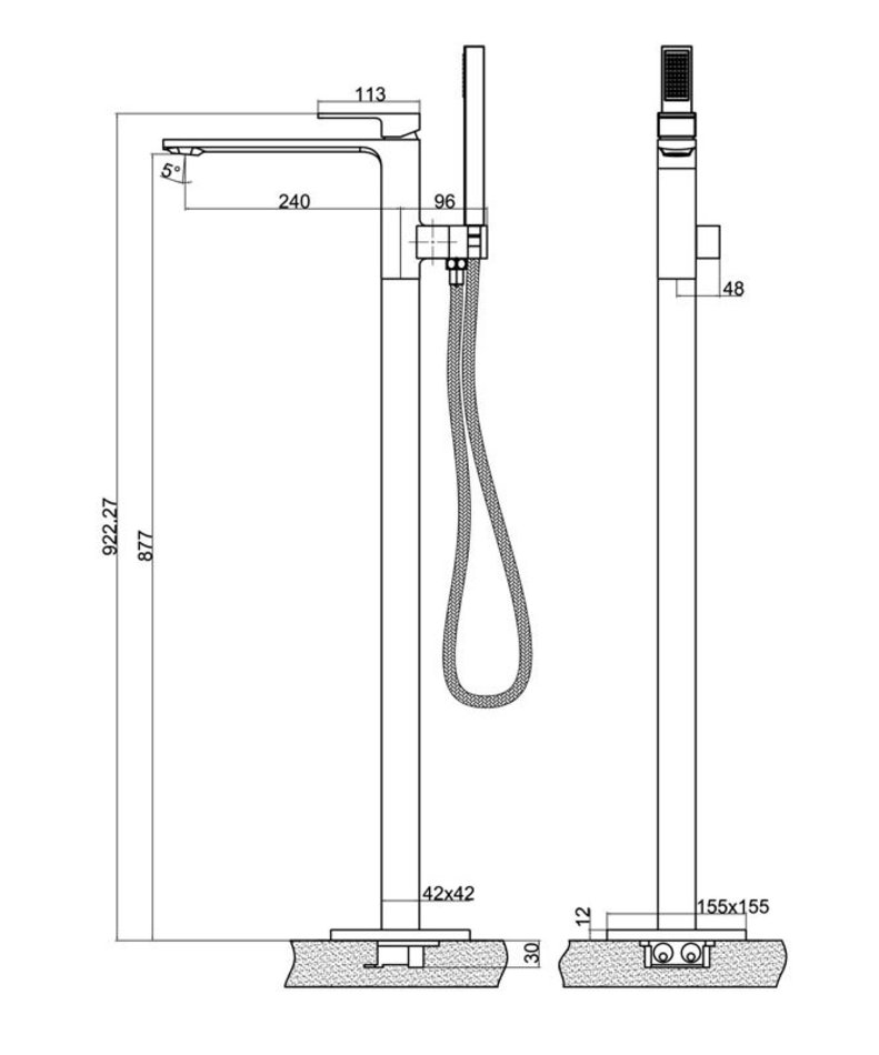 Смеситель для ванны и душа BelBagno Luce, напольный, черный матовый, LUC-FMT-NERO
