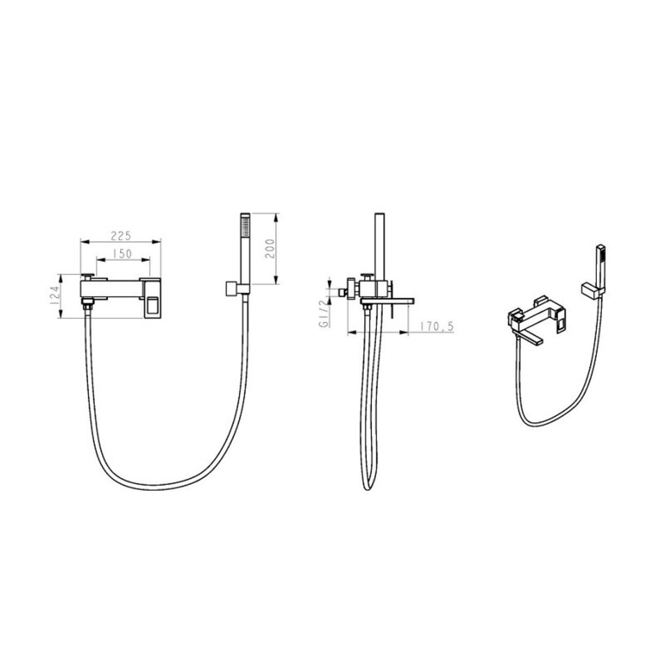 - Оснащение: аэратор, душевая лейка, душевой шланг, эксцентрики, настенный держатель