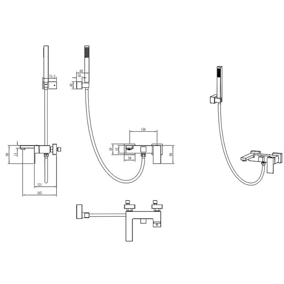 Смеситель для ванны и душа Boheme Qubic 473-B, цвет Matt Black