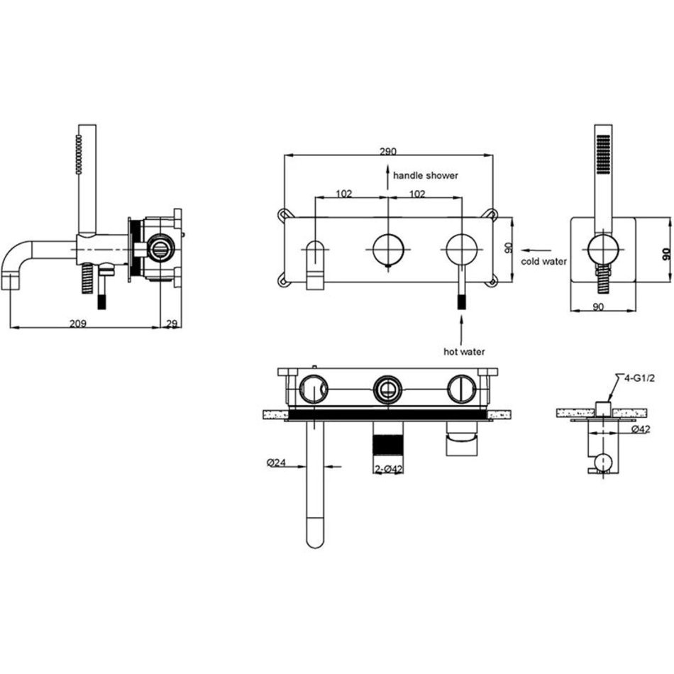 Смеситель для ванны и душа Boheme Uno 464-3-B, черный