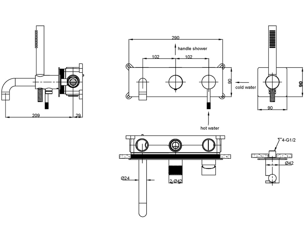 Смеситель для ванны и душа Boheme Uno 464-3-NB, никель