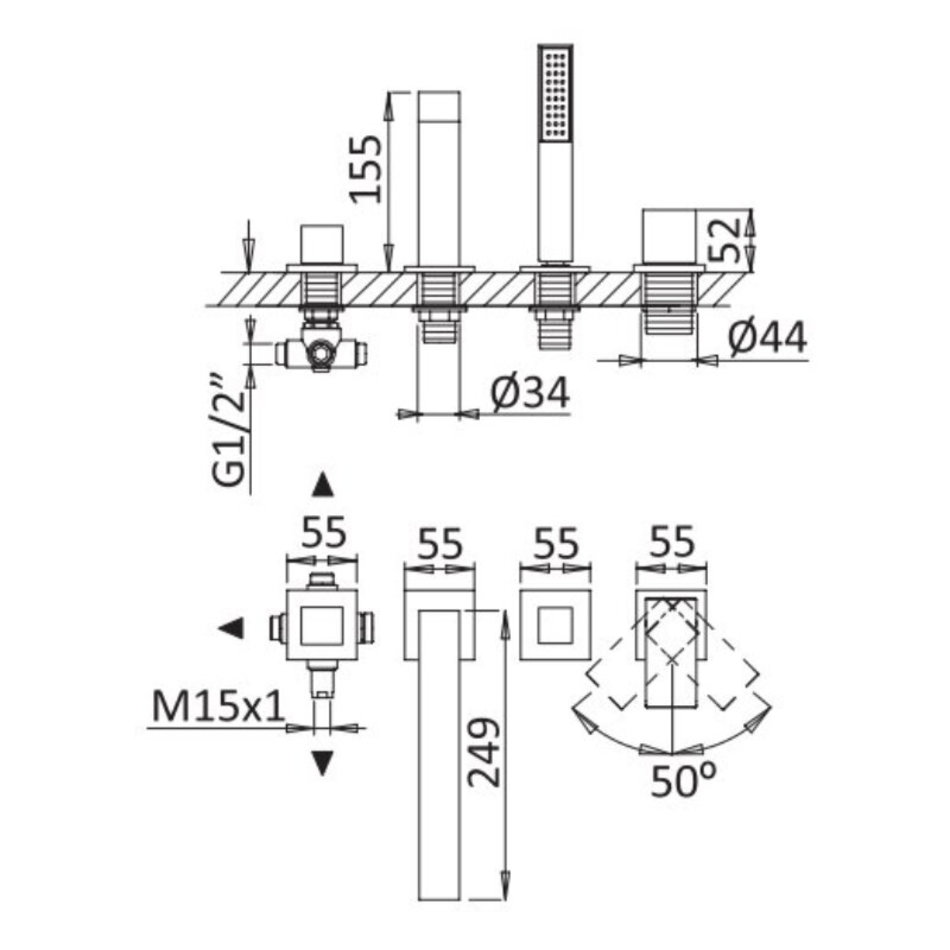 - Оснащение: душевой шланг, душевая лейка, крепления, аэратор, гибкая подводка, дивертор,