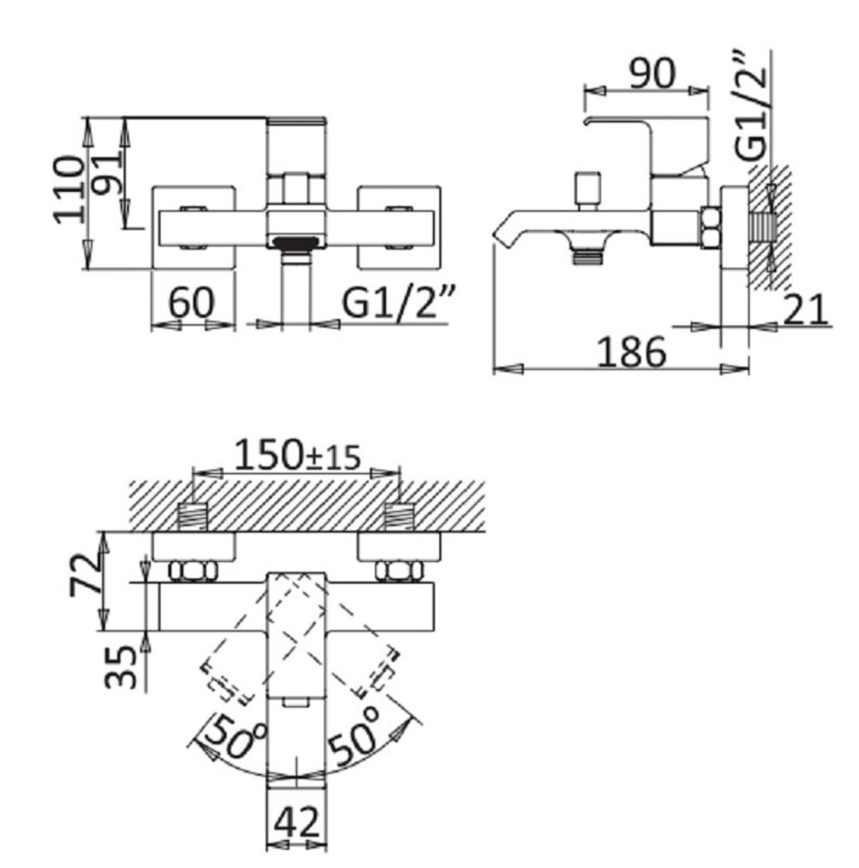 Смеситель для ванны и душа Cezares Porta PORTA-VM-NOP, черный матовый