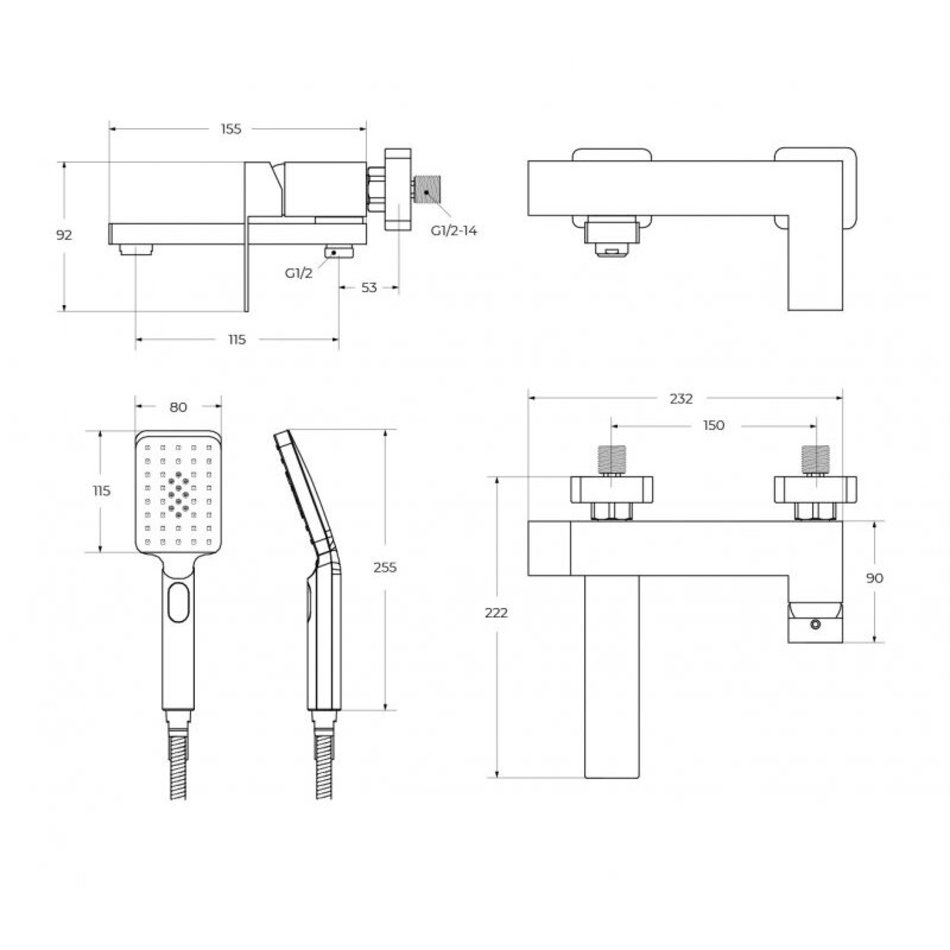 - Оснащение: смеситель с поворотным изливом (переключение на ручной душ), эксцентрики, аэратор, душевой шланг, ручной душ 3-х режимный, держатель настенный