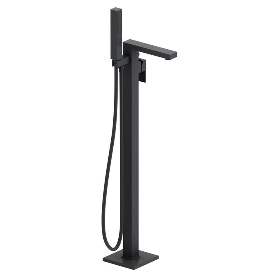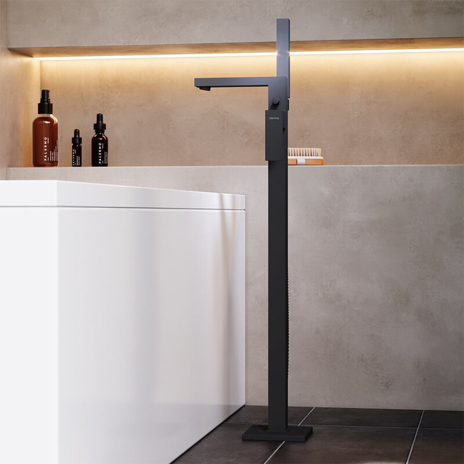 Смеситель для ванны и душа Damixa Gala 535000300, с душевым гарнитуром, напольный, цвет черный матовый