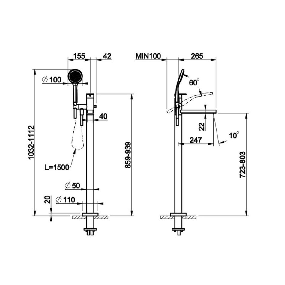 Смеситель для ванны и душа Gessi Via Manzoni 24982/299, с душевым гарнитуром, цвет черный матовый