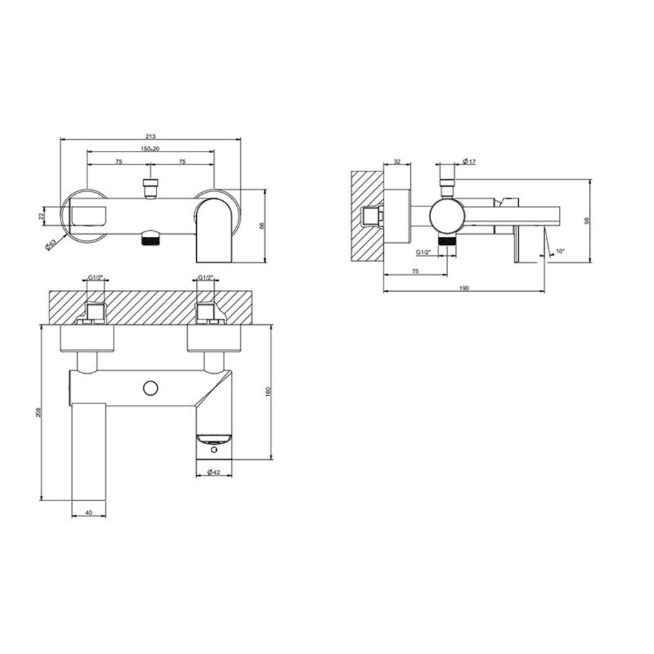 Смеситель для ванны и душа Gessi Via Manzoni 38613/299, цвет черный матовый