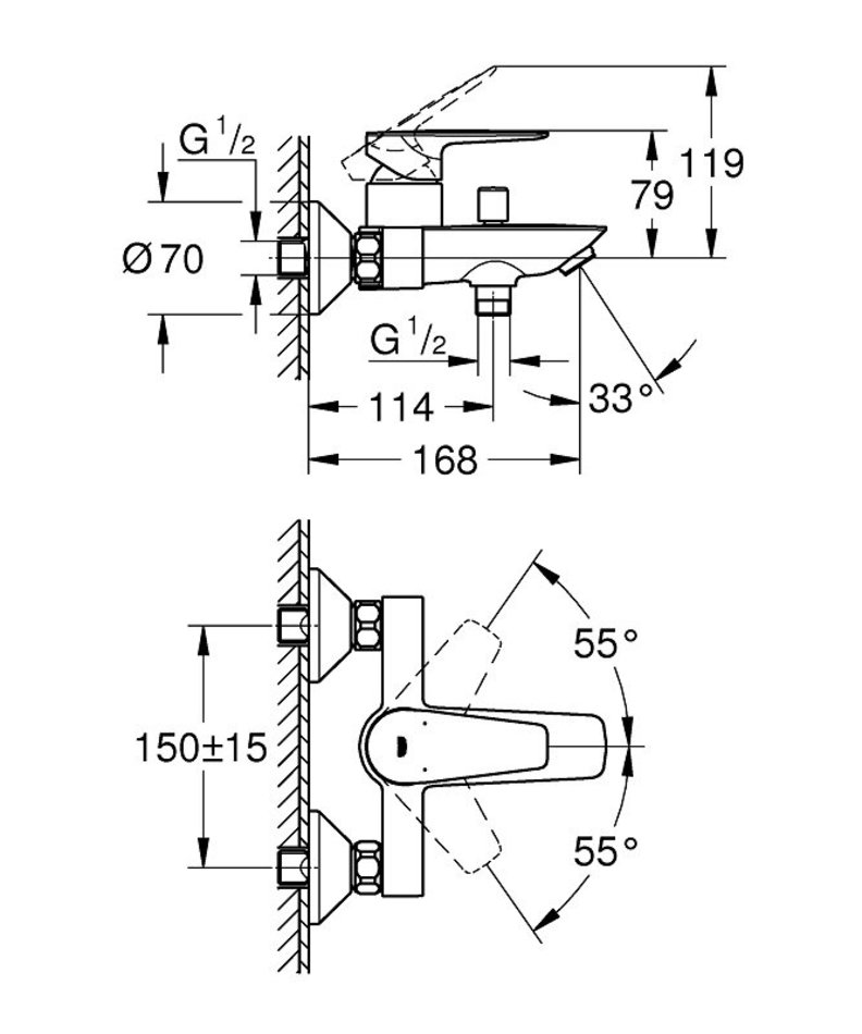 Смеситель для ванны и душа Grohe BauEdge New, 23604001, хром
