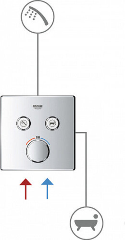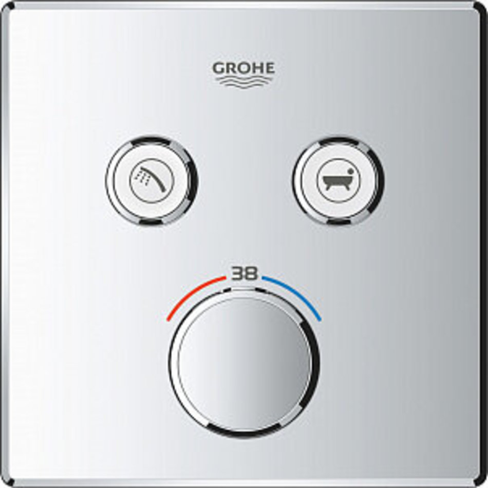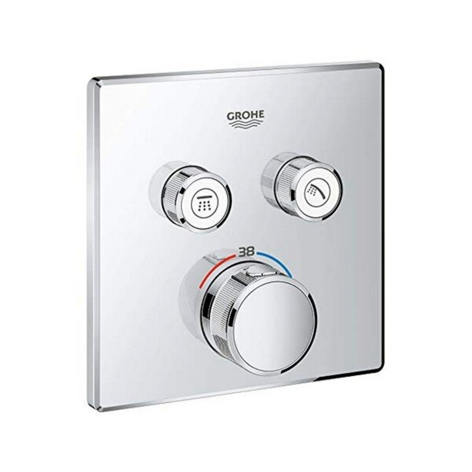 Встраиваемый стильный термостат известного немецкого бренда Grohe предназначен для ванны с душем. Видимой остается только металлическая панель квадратной формы и регуляторы настройки напора и температуры воды. Две «умные» кнопки SmartControl управляют потоком в выбранном устройстве – ручном, верхнем душе или изливе для ванны. Также возможно одновременно включить обе точки отвода. Фирменная технология GROHE TurboStat® смесителя-термостата предотвратит скачки температуры, а стопор безопасности сработает при повышении температуры выше 38 °С. Такое преимущество очень актуально в семьях с детьми. Металлические детали выполнены из долговечной антикоррозионной латуни. Тонкий профиль термостата способствует поддержанию чистоты, а его фирменное хромированное покрытие GROHE StarLight® сохранит ослепительный блеск на долгие годы. Для ухода достаточно протереть изделие мягкой салфеткой.