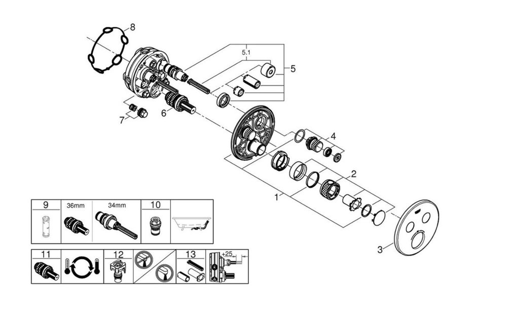 - комплект верхней монтажной части для GROHE Rapido SmartBox 35 600 000
