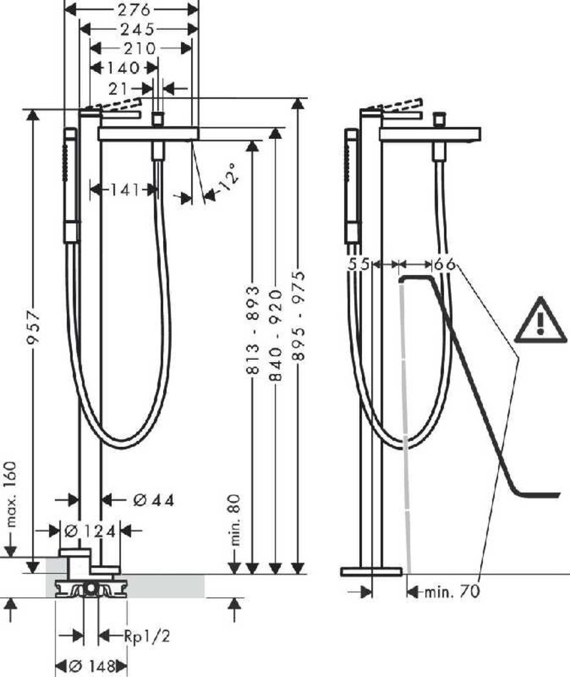 Смеситель для ванны и душа Hansgrohe Finoris, напольный, хром глянцевый, 76445000