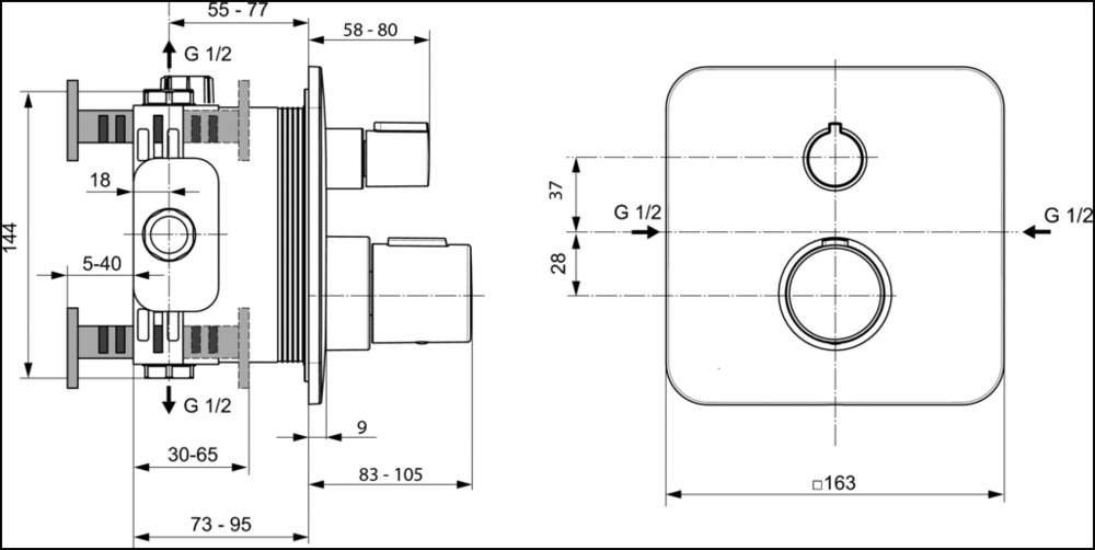 - Термостатический индивидуальный встраиваемый смеситель для ванны/душа, комплект №2 (внешняя часть);
