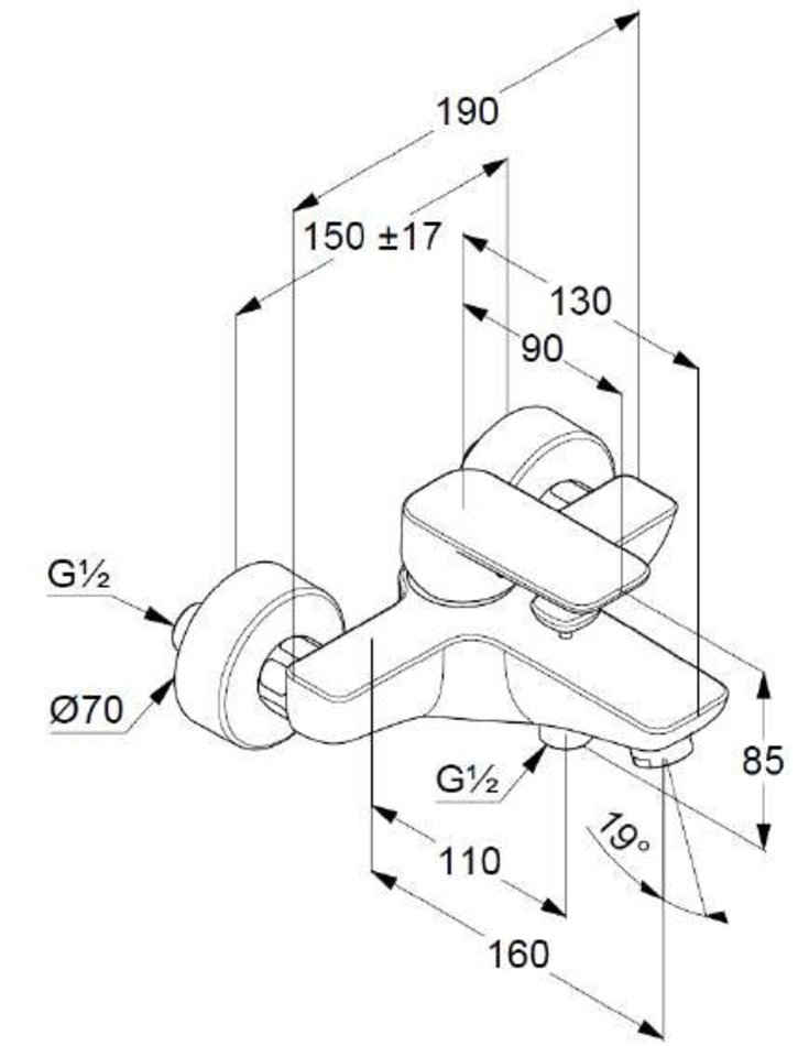 Смеситель для ванны и душа Kludi Pure&Style 406810575