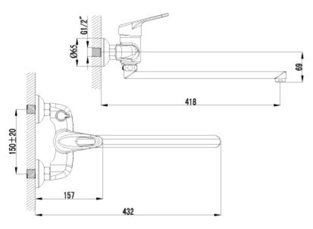Оснащение - душевой шланг, душевая лейка, настенный держатель, эксцентрики, аэратор, дивертор.
