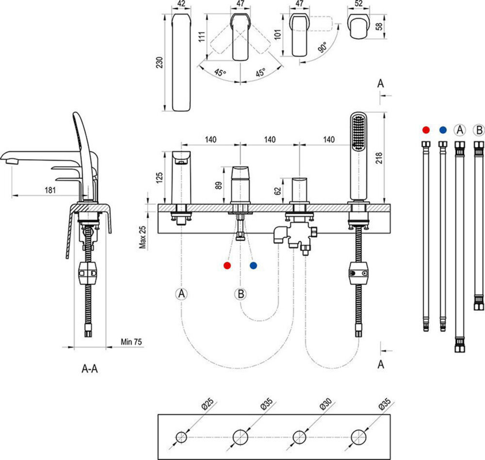 Смеситель для ванны и душа Ravak Flat X070176 Black, врезной, цвет черный матовый