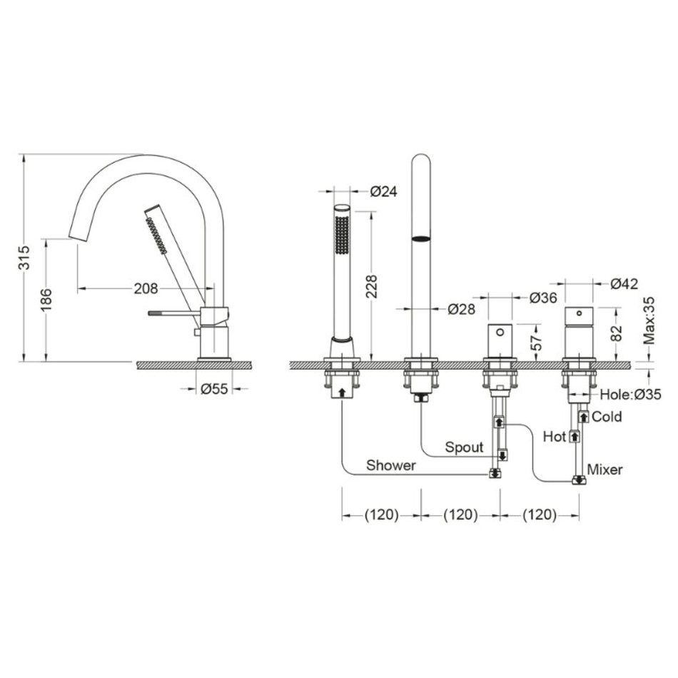 - Смеситель врезной - 1 шт.