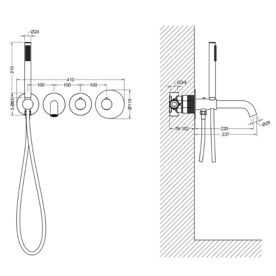 Смеситель для ванны и душа Timo Saona 2324/03YSM, цвет черный матовый