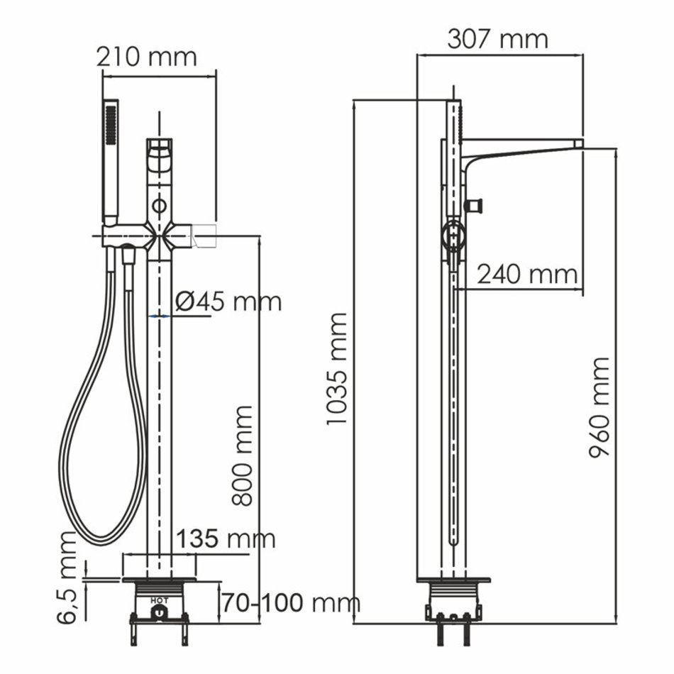 Смеситель для ванны и душа WasserKRAFT Sauer, напольный, с душевым гарнитуром, золото, 7121