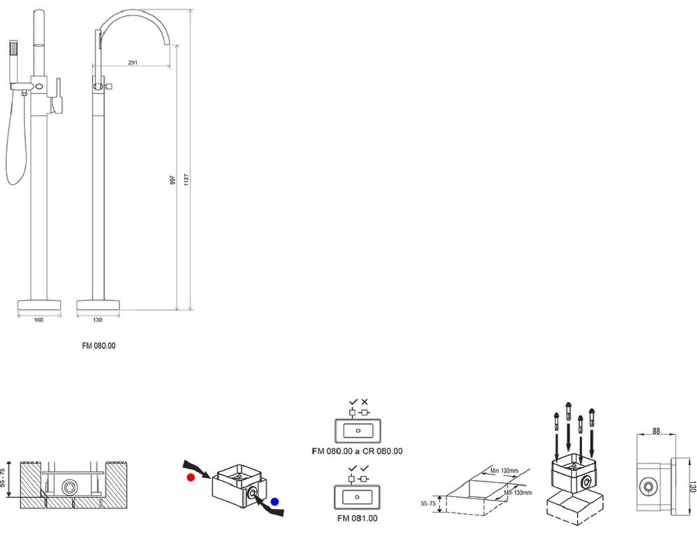 Смеситель для ванны Ravak FM 080.00, напольный, хром, X070059