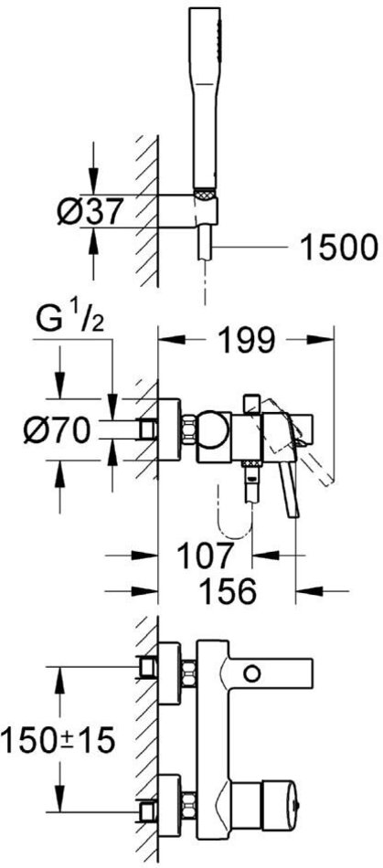 - встроенный обратный клапан в душевом отводе 1/2"