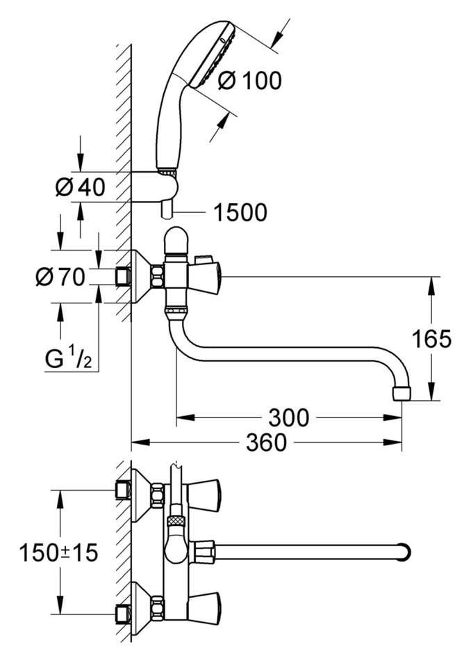 Смеситель Grohe Costa S 2679210A универсальный для ванны/душа с гарнитуромУниверсальный смеситель, DN 15