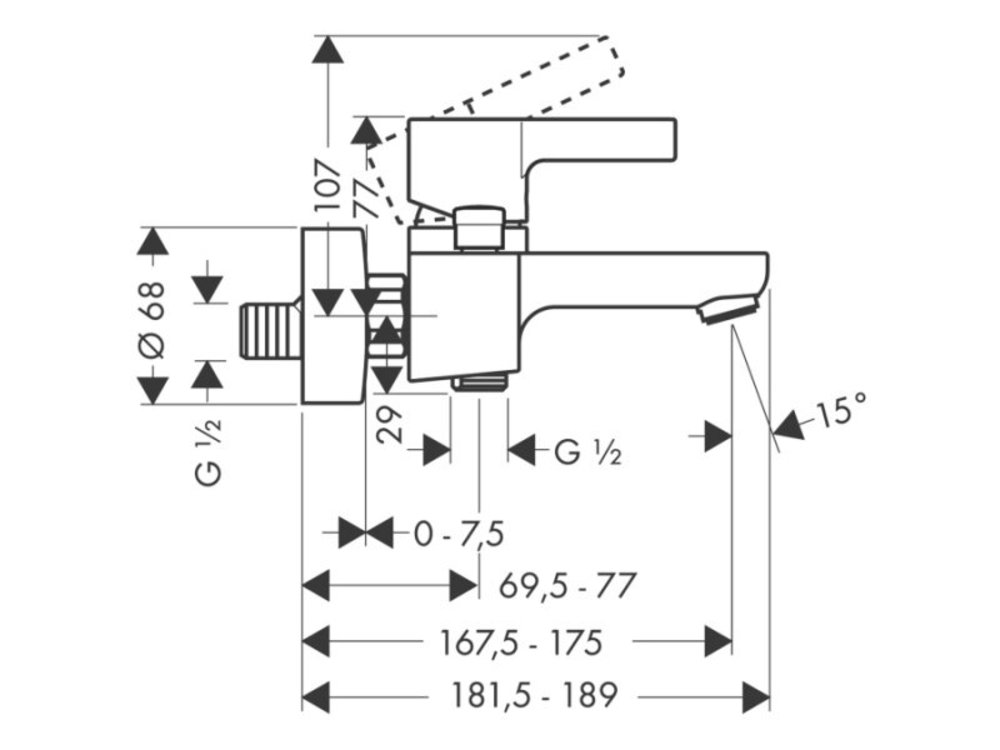 Смеситель Hansgrohe Metris S ( Метрис С ) 31460 для ванны, однорычажный. Монтаж настенный, автоматический переключатель ванна/душ, керамический картридж, встроенные обратные клапаны, максимальный расход воды 22 л/мин, ограничитель температуры воды, регулируется, подходит для проточных водонагревателей.