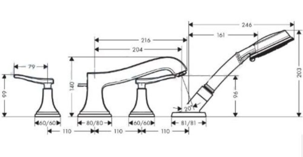 Смеситель Hansgrohe Metropol Classic 31441000 для ванны на 4 отверстия, хром