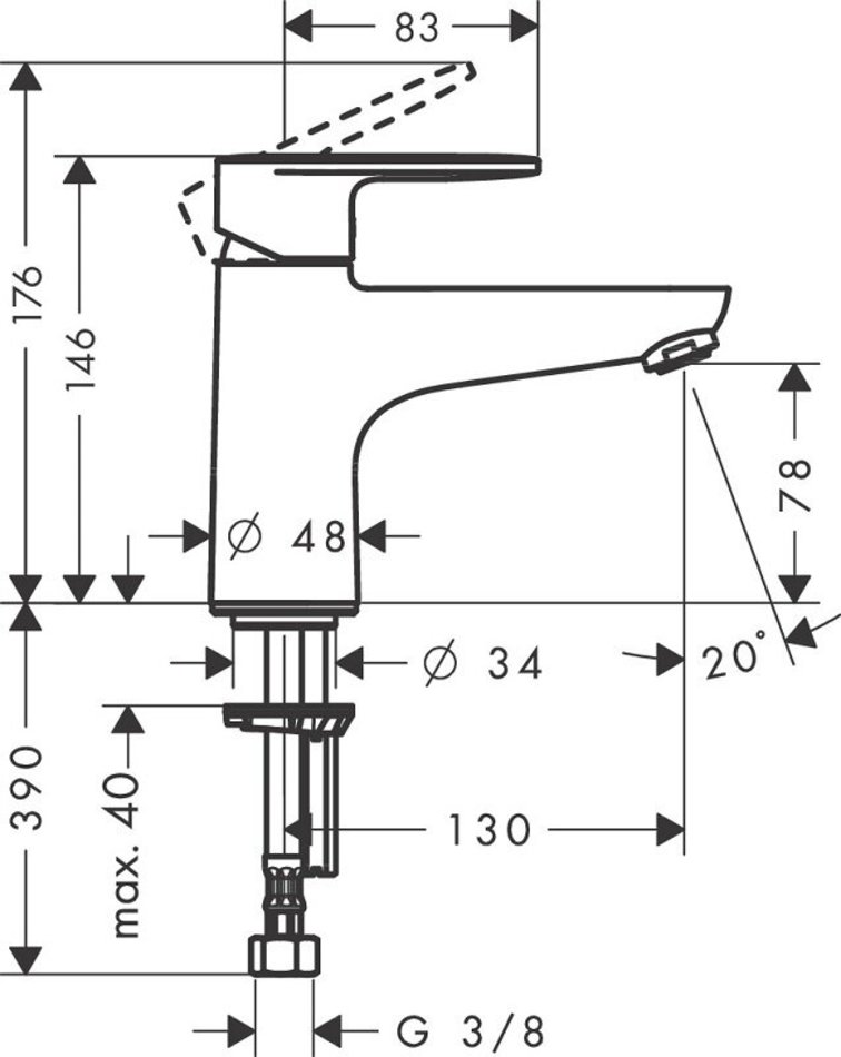 - максимальный объем расхода воды при 3 барах: 20 л/мин
