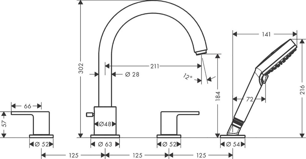 Смеситель Hansgrohe Vernis Shape для ванны и душа, на борт ванны, матовый черный, 71459670