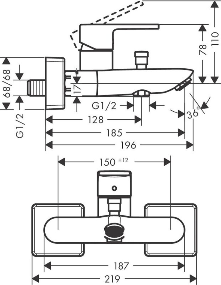 Смеситель Hansgrohe Vernis Shape, для ванны и душа, 2 уровня расхода воды, цвет хром, 71453000
