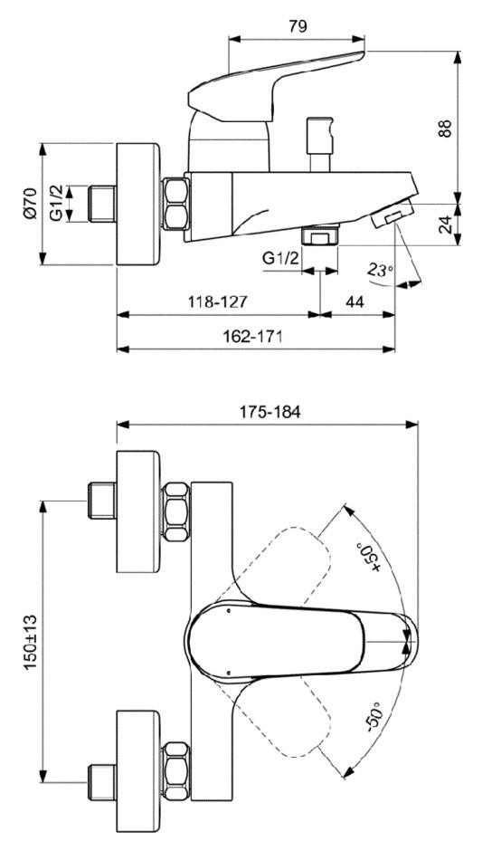 Смеситель Ideal StandardCeraflex настенный для ванны и душа, хром, B1721AA