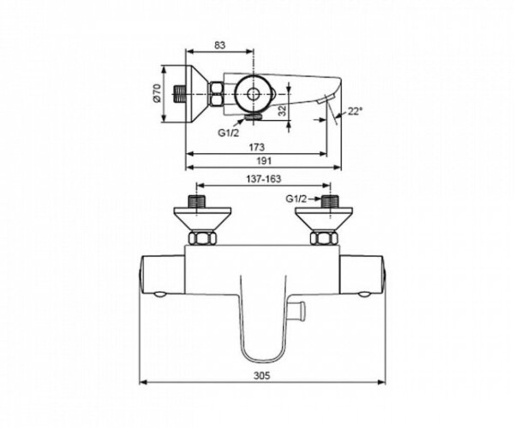 Смеситель Ideal Standard Ceratherm A5550AA для ванны/душа с термостатом