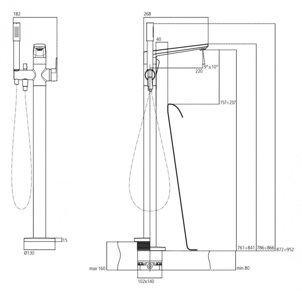 Смеситель Ideal StandardTonic II напольный для ванны с душем, хром, A6347AA