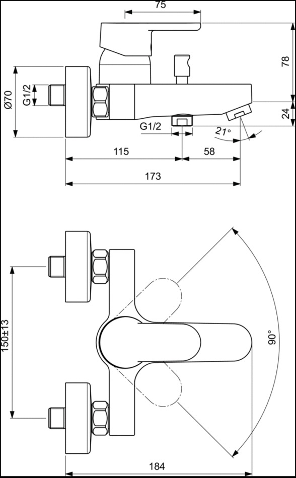 - VITO настенный смеситель для ванны/душа