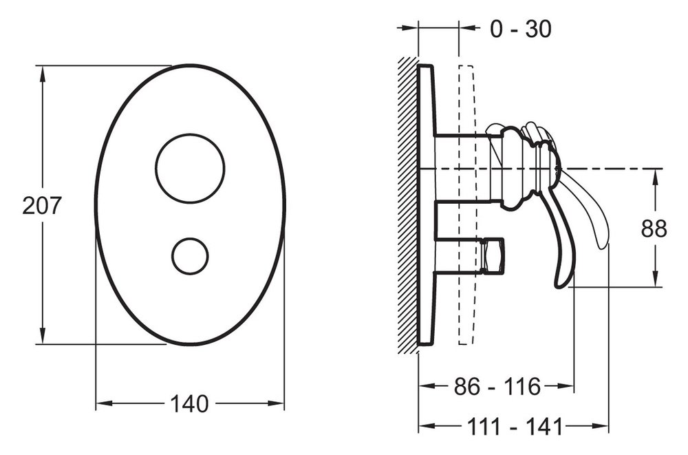 - Подключение: к двум выпускным отверстиям (например: верхний душ, ручной душ, излив для ванны)