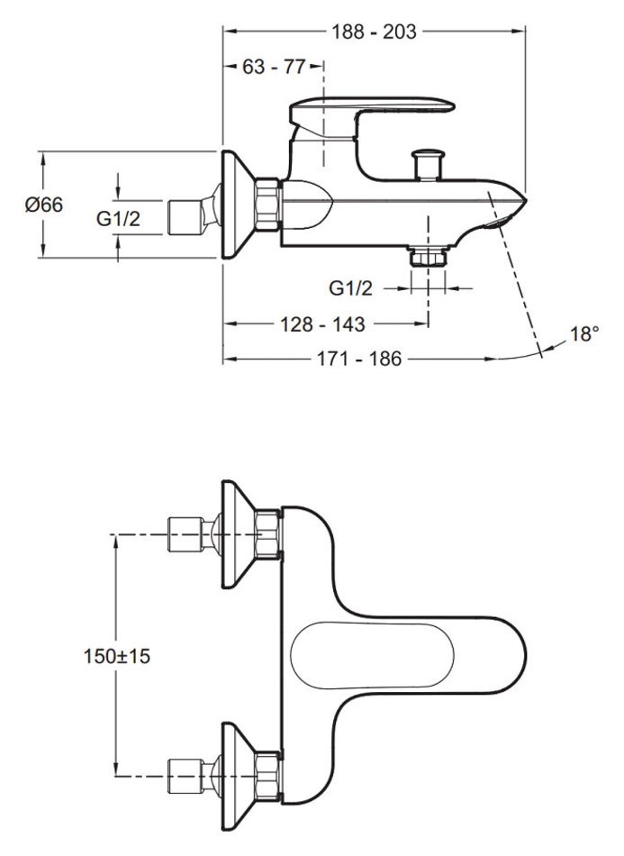 Смеситель Jacob Delafon Kumin для ванны и душа, E99460-CP