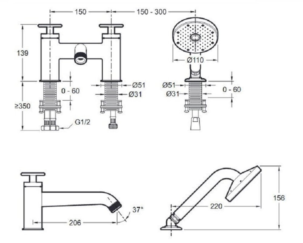 Смеситель Jacob Delafon Nouvelle Vague E78343-BLV для ванны и душа, на три отверстия, цвет черный матовый