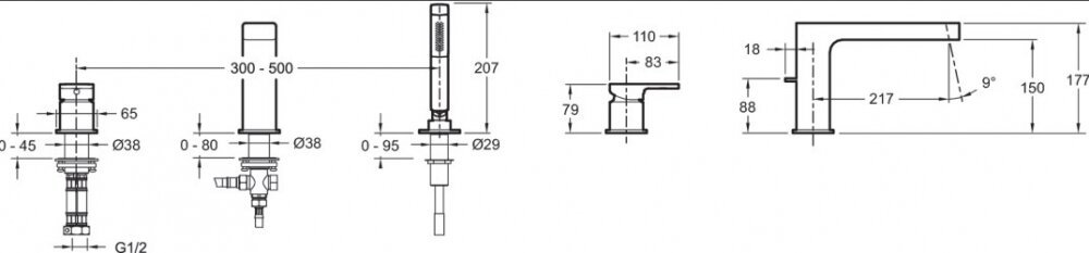 Смеситель Jacob Delafon Strayt E37337-CP для ванны и душа