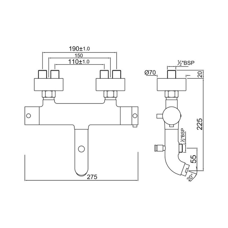 Смеситель Jaquar Florentine FLR-CHR-5657 для ванны и душа, термостатический, хром