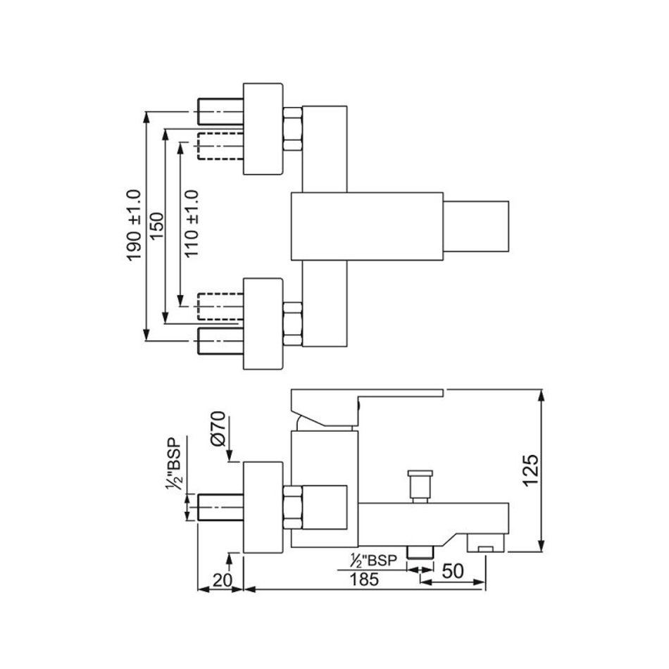 Смеситель Jaquar Kubix-F KUB-CHR-35119F для ванны и душа, хром